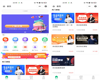 H5/微信/抖音小程序APP在线教育培训知识付费变现直播视频音频导师课程课堂入驻DIY装修